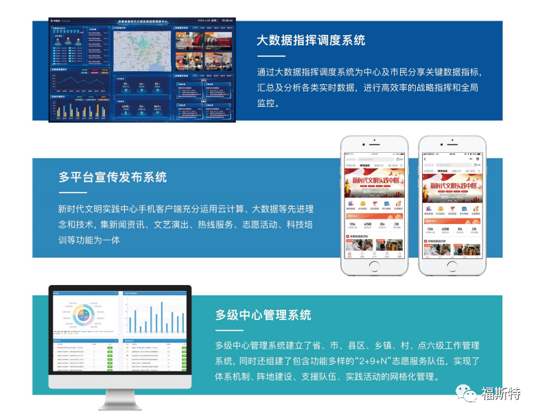 安徽福斯特信息技術有限公司持續(xù)助力新時代文明實踐中心建設,充分利用大數(shù)據(jù)、云計算、移動互聯(lián)網(wǎng)等新一代信息技術,打造新時代文明實踐中心云平臺,完善平臺動員、整合、引導、服務、創(chuàng)新和保障能力,實現(xiàn)新時代文明實踐中心的可持續(xù)運營。